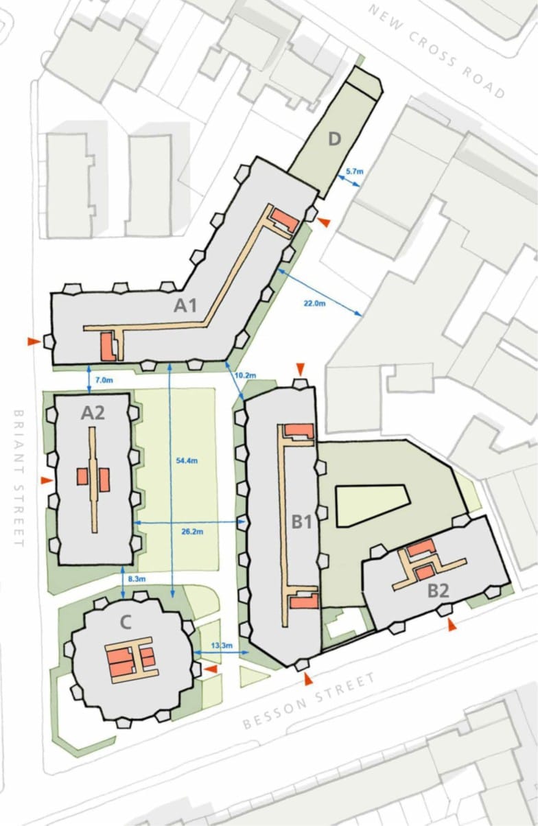 The proposed changes to the Besson Street development increase the number of homes to 383, while keeping the proportion of affordable homes at London Living Rent at 35% (134 homes).