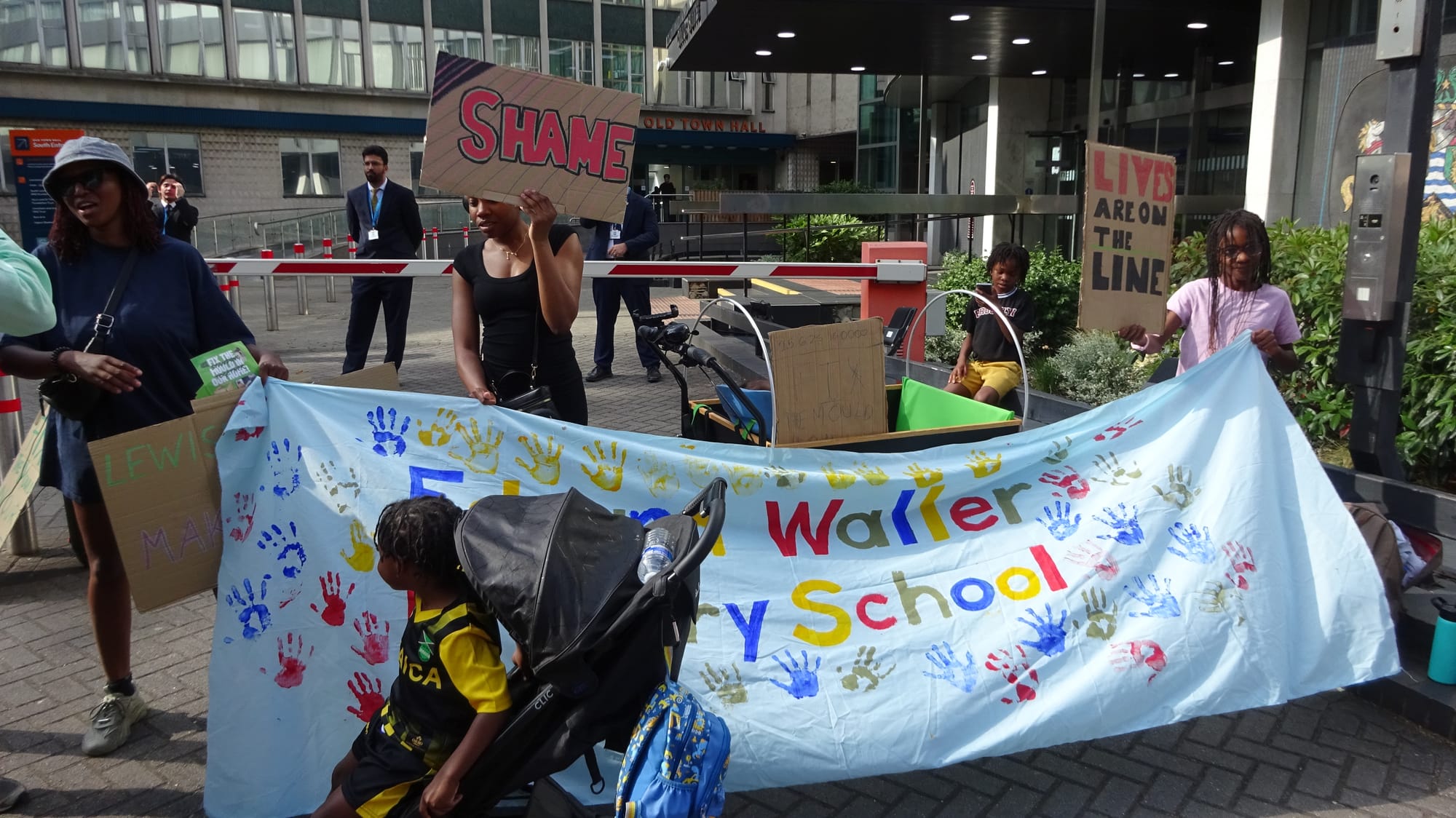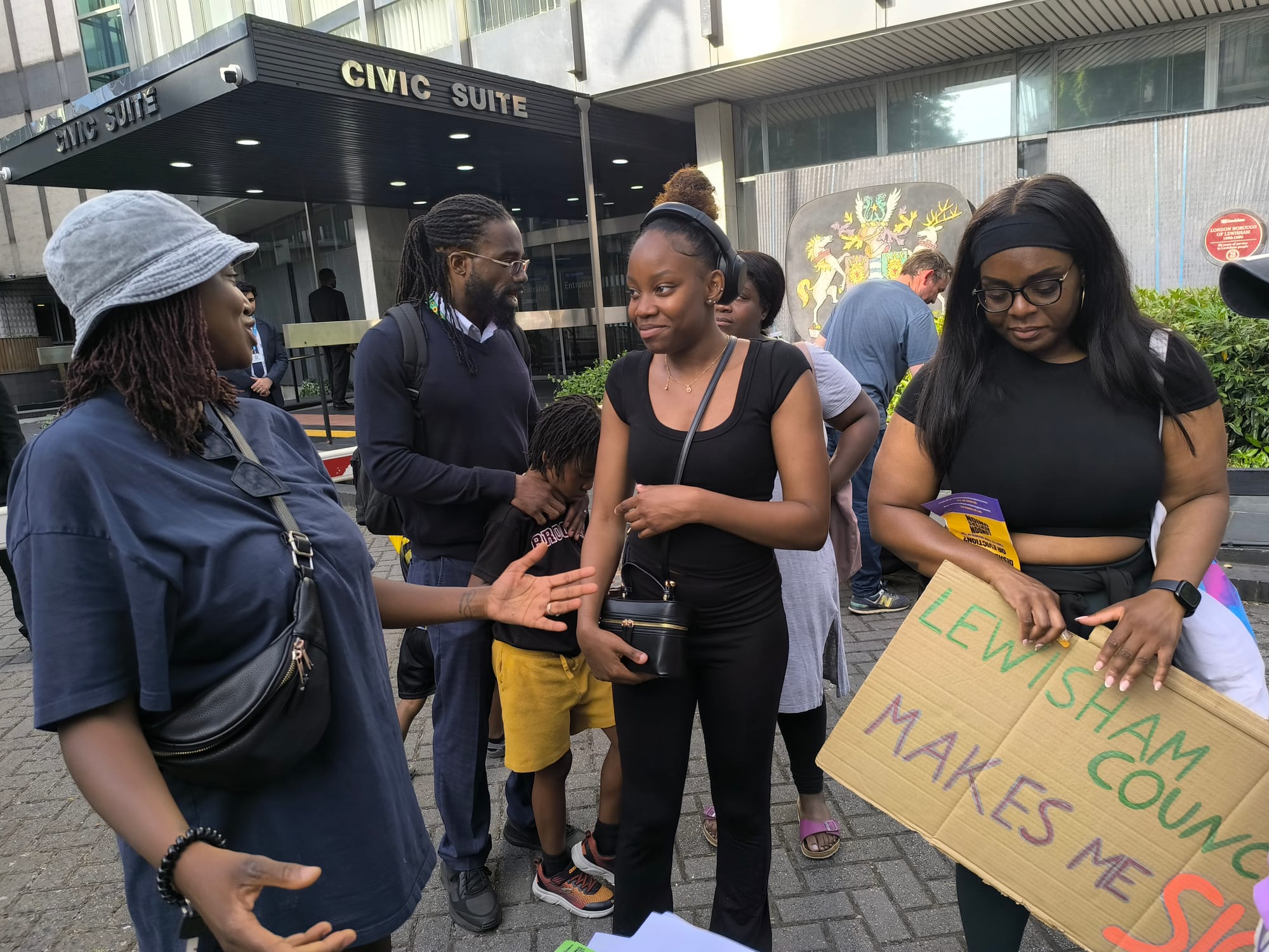 Mica's family, friends, neighbours and parents from her children's school joined Lewisham LRU members outside the council offices.