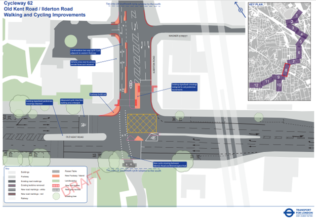 Other improvements include building out the pavement and revised pedestrian signalling, as well as improvement to the intersection with Old Kent Road.