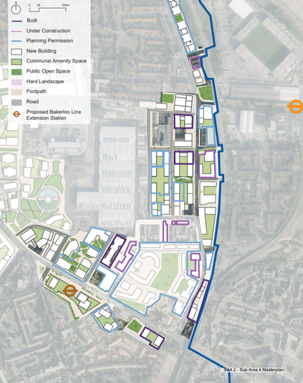 The Area Action Plan identifies future locations of the Bakerloo Line extension, which is unfunded, and Surrey Canal infill station on the Windrush Line.
